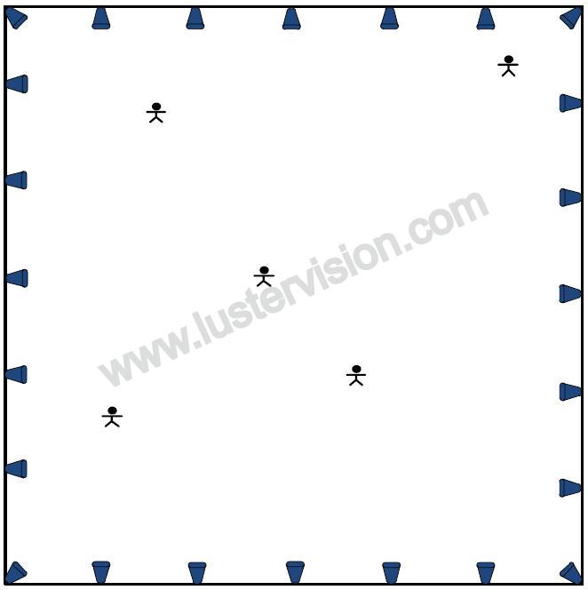 摄像机:Prime 41 场景面积:15m x 15m 跟踪人数:12+ |